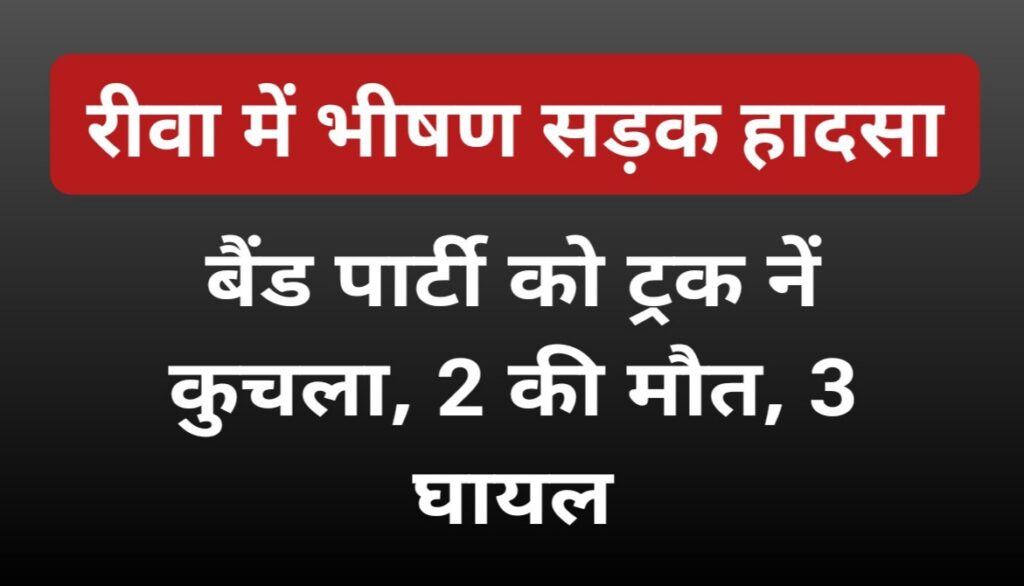 रीवा में कल रात एक भीषण सड़क हादसा हुआ। यहां बरहौ संस्कार कार्यक्रम से लौट रही बैंड पार्टी में शामिल 5 लोगों को तेज रफ्तार हाइवा वाहन नें कुचल दिया। वाहन की चपेट में आनें से 2 की मौके पर ही मौत हो गई जबकि 3 गंभीर रूप से घायल बताए गए है। घायलों को फिलहाल उपचार के लिए संजय गांधी अस्पताल में भर्ती कराया गया है, जबकि मृतकों के शवों का पीएम कराया जा रहा है।