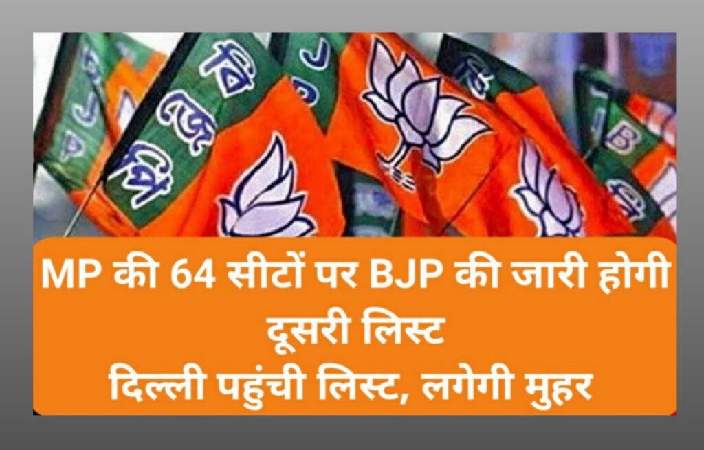 मध्य प्रदेश विधानसभा चुनाव की तैयारी में लगी हुई सत्ता दल भारतीय जनता पार्टी अब अपने उम्मीदवारों के नाम की सूची सार्वजनिक कर रही है । उसी के तहत 64 उम्मीदवारों के नाम की सूची जल्द ही भाजपा सार्वजनिक कर सकती है । इसके लिए भाजपा के प्रदेश अध्यक्ष बीडी शर्मा, मुख्यमंत्री शिवराज सिंह चौहान सहित अन्य पदाधिकारी चर्चा करने के बाद दिल्ली में उम्मीदवारों के नाम पर मुहर लगाने के लिए पहुंचे हुए हैं। उम्मीद है कि जल्द ही 64 उम्मीदवार पार्टी के चुनाव मैदान में होंगे।