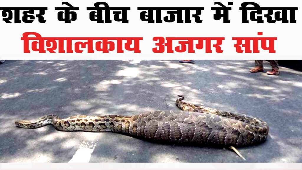 रीवा शहर के बीचों बीच भरे बाजार उस वक्त हड़कम्प मच गया जब एक विशालकाय अजगर शाप सड़क पर चहल कदमी करते नजर आया। लगभग 12 फिट लम्बे इस अजगर को बीच सड़क पर देख दोनों तरफ से आवागवन पूरी तरह से रुक गया। वही मौके पर मौजूद लोगों ने इसका वीडियो भी बनाया है, जो अब कौतूहल का विषय बना हुआ है।